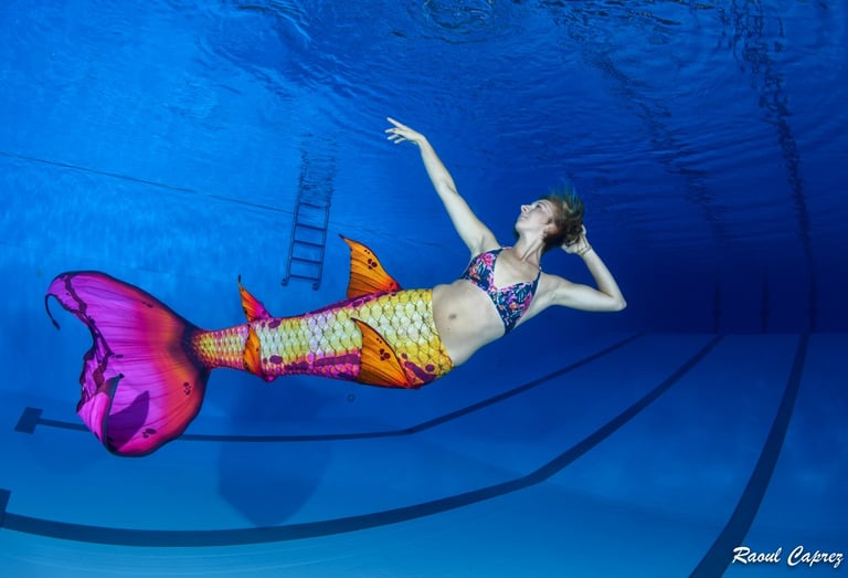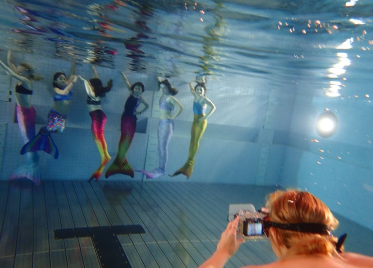 Wir üben unter Wasser entspannt und grazil zu posieren und machen regelmässig Fotoshootings, um unser Erlerntes anzuwenden.